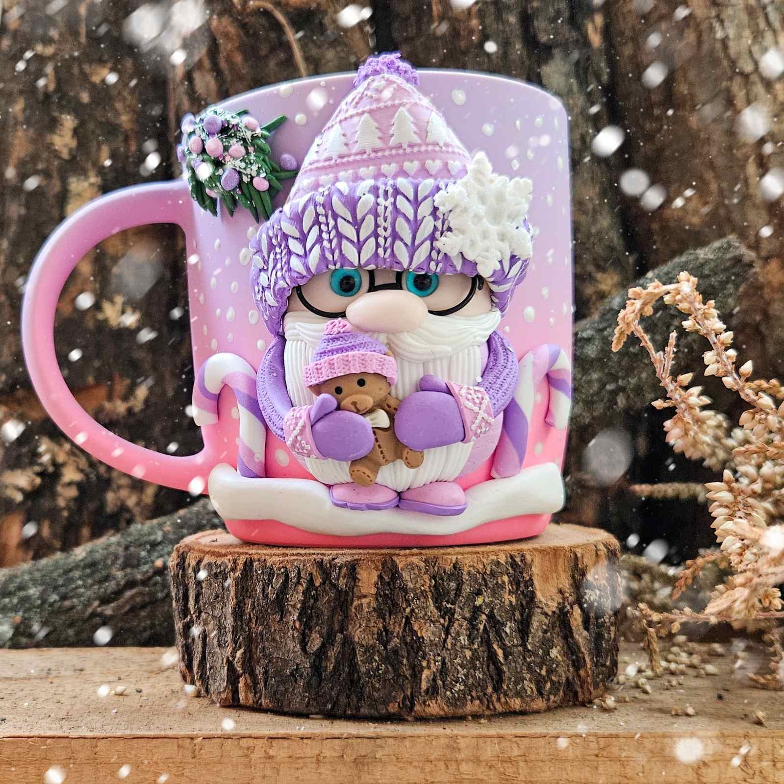 Kерамична чаша с гномче и коледни мотиви, изработени от полимерна глина. Чашата е декорирана изцяло ръчно и е единична бройка.