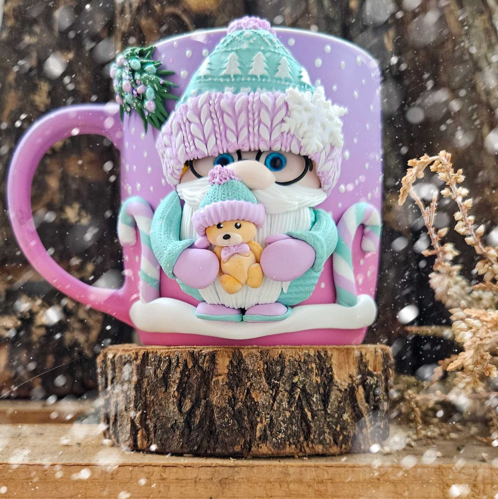 Kерамична чаша с гномче и коледни мотиви, изработени от полимерна глина. Чашата е декорирана изцяло ръчно и е единична бройка.